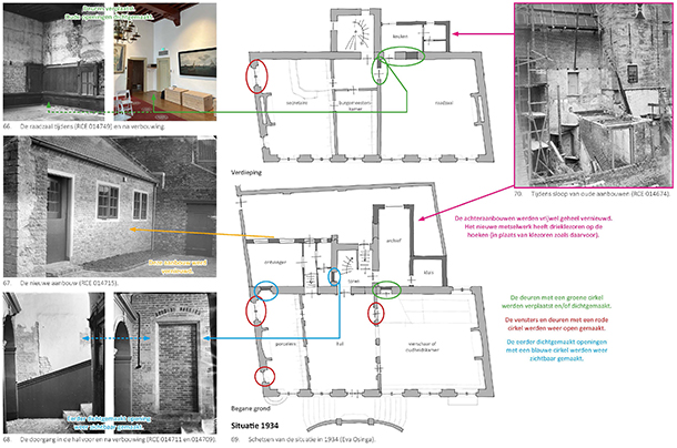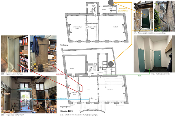 In de bierkelder kwam een betonnen vloer met rode plavuizen. Een deel van de kasten in de griffie werden verwijderd om de gotische raamopeningen en schouw weer zichtbaar te maken en te herstellen. De andere schouwen werden ook hersteld.